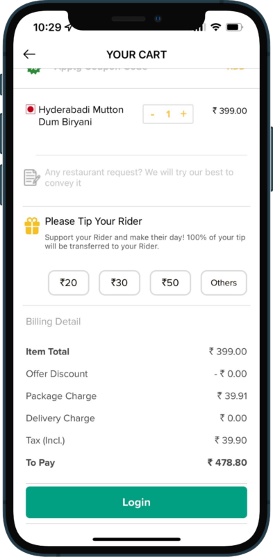 Users can tip the rider with different payment choices for his/her excellence in delivery service.