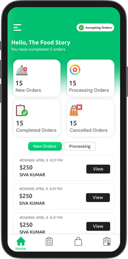 Smoothly accept or reject incoming orders, update their status, and manage fulfillment efficiently through a user-friendly interface.