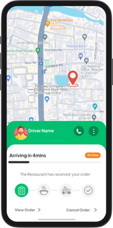 Keep users informed with live updates from order placement to doorstep delivery, including ETA, driver location, and status changes.